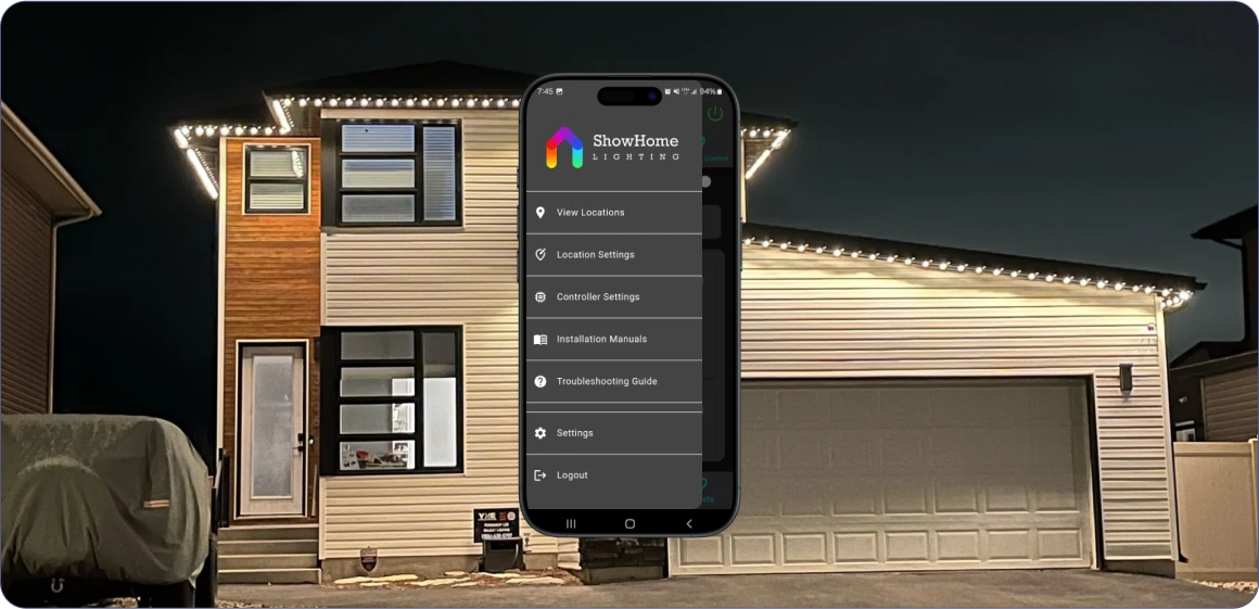 Professional Installation by Your Local ShowHome Lighting Certified Partner – Control Your Lights Year-Round from Your Phone